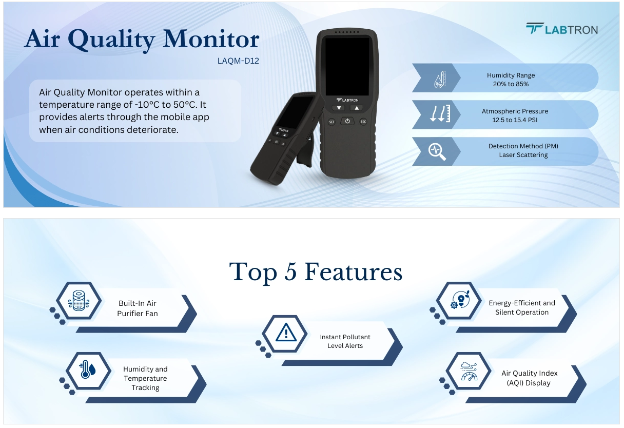 内置空气净化风扇 湿度和温度跟踪 即时污染物浓度警报 节能静音运行 空气质量指数 (AQI) 显示