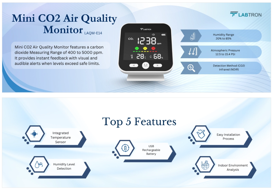 我们的迷你二氧化碳空气质量监测仪非常适合工业厂房、仓库和制造工厂,它通过检测二氧化碳水平和状况来帮助维护工作场所安全,防止空气质量危害。