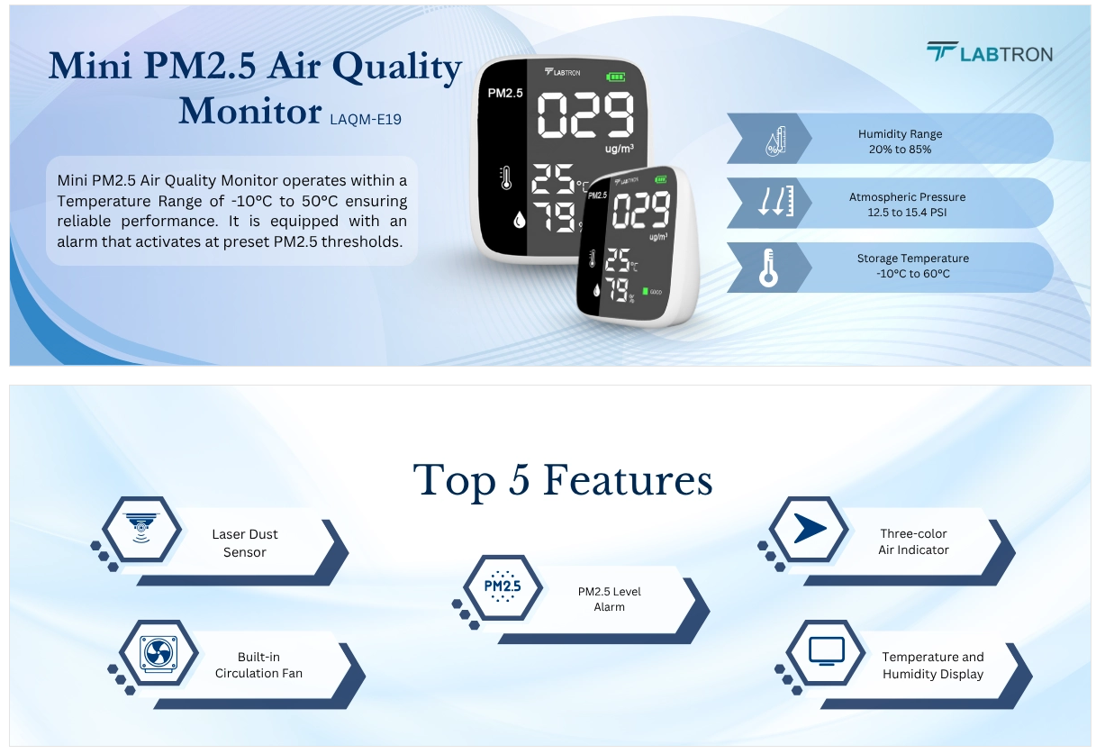 我们的迷你型PM2.5监测仪非常适合家庭、办公室、学校和实验室使用。它通过持续监测PM2.5、温度和湿度,并提供实时警报和可视化指示器,来维持健康的环境。