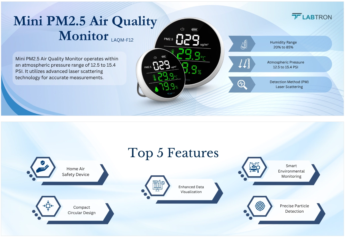 我们的迷你PM2.5监测仪是家庭、办公室、学校、医院、实验室、工厂和仓库的理想之选,可高精度监测空气污染、温度和湿度水平,从而确保更安全的环境。