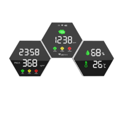 我们的壁挂式显示器可用于家庭、办公室、学校、医院、工厂、仓库、实验室、温室和停车场,用于检测二氧化碳、PM2.5、温度和湿度,从而确保安全通风的环境。