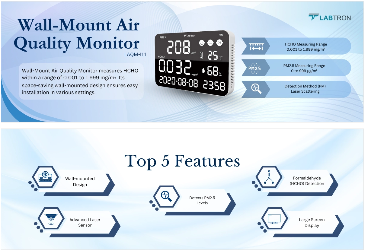 我们的壁挂式显示器是医疗机构、商业建筑、制造单位、图书馆、教育机构、博物馆、会议室和研究实验室的理想之选,有助于维护健康清洁的空气环境。