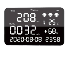 壁挂式设计 先进的激光传感器 检测PM2.5浓度 甲醛(HCHO)检测 大屏幕显示